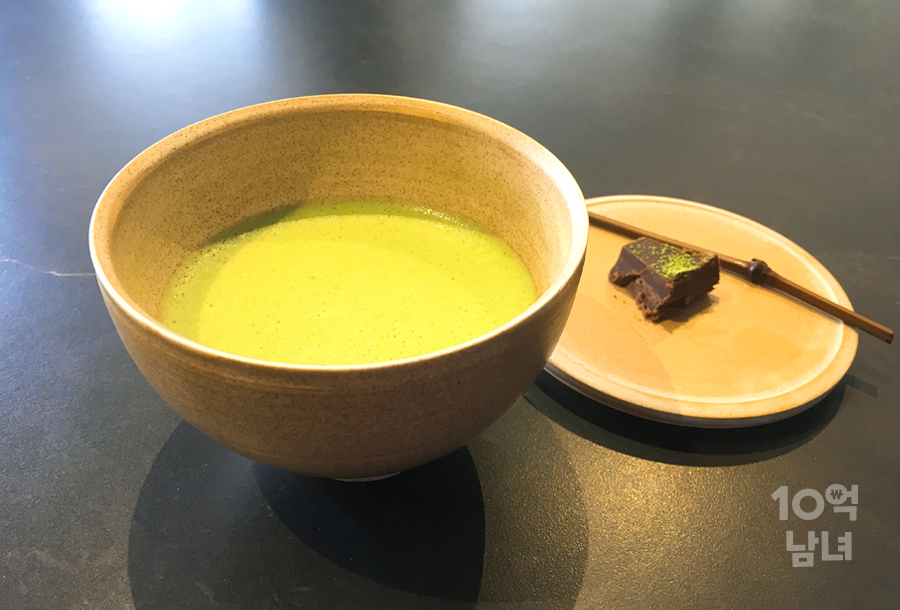 티코스도 있는데 저희는 스파클링 유즈 맛차와 클래식 맛차를 주문! 클래식 맛차를 주문하면 초콜릿이랑 주는데 초콜릿을 먼저 먹고 차를 마시라고 하더라구요ㅎㅎ